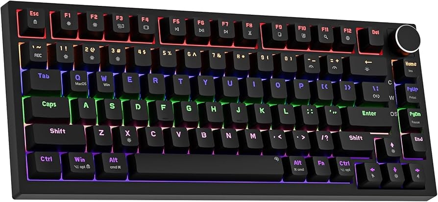 Bàn phím cơ chơi game có đèn nền LED cầu vồng mang đến cho bạn những hiệu ứng hình ảnh thú vị. Nó cung cấp 6 màu đèn nền và 20 chế độ đèn nền để cá nhân hóa diện mạo bàn phím cơ của bạn.