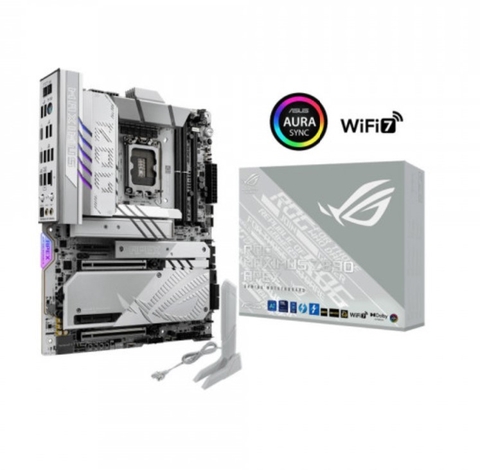 Đối với những người yêu thích màu sắc nhẹ nhàng hơn để tăng tính thẩm mỹ cho thiết kế của họ, Mainboard ROG Maximus Z890 Apex có bề mặt màu xám sỏi, các điểm nhấn bằng kim loại bóng loáng, đường viền bóng bẩy và bảng màu chủ yếu là màu bạc.