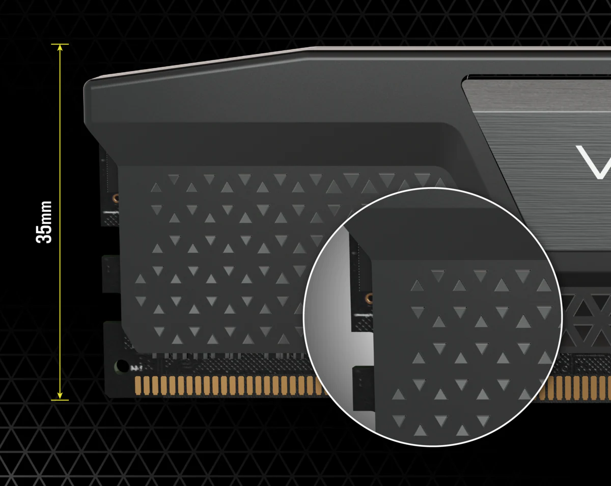 Bộ tản nhiệt nhôm Ram PC Corsair Vengeance DDR5 được trang bị bộ tản nhiệt nhôm giúp cải thiện độ dẫn nhiệt để làm mát tốt nhất ngay cả khi ép xung. |