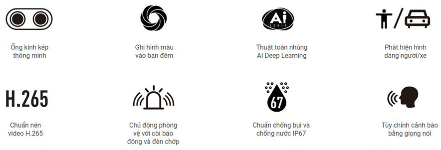 - Tích hợp âm thành 2 chiều cảnh báo bằng giọng nói.