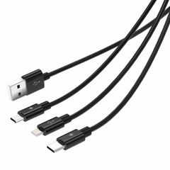 Cáp sạc điện thoại 3 trong 1 Lightning/Type C/Micro B USB 2.0 thiết kế sợi đan mạng nhện chống bị kéo dãn. Cáp dài 1.2m. Dòng tối đa 3A.