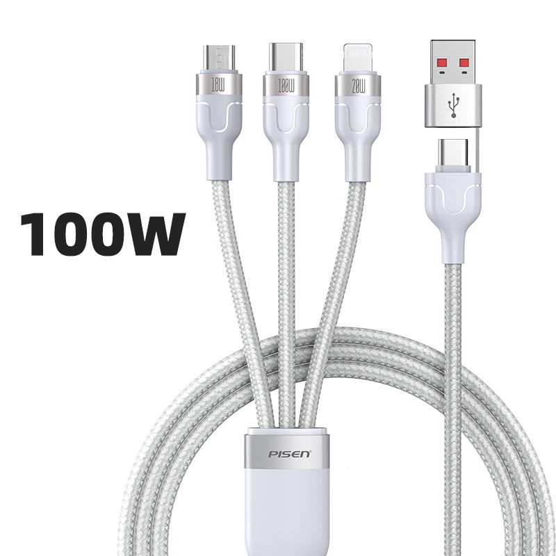Cáp PISEN Quick 3-in-2 (USB-A, Type-C To Type-C, Lightning, Micro ) 5A Aluminum alloy braided 1200m