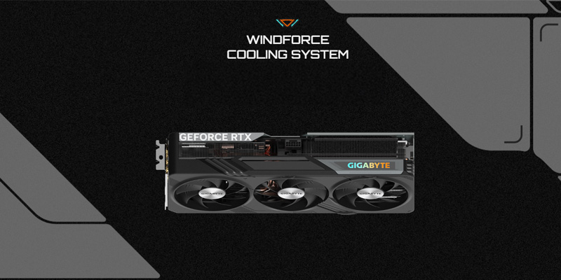 Hệ thống tản nhiệt WINDFORCE trang bị 3 fan 80mm, quay luân phiên cùng 4 ống dẫn nhiệt bằng đồng tổng hợp để GPU tiếp xúc trực tiếp giúp mang lại khả năng tản nhiệt hiệu quả cao.