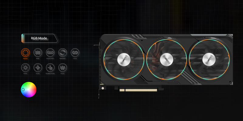 Với 16,7M tùy chọn màu sắc có thể tùy chỉnh và nhiều hiệu ứng ánh sáng, bạn có thể chọn bất kỳ hiệu ứng ánh sáng nào hoặc đồng bộ hóa với các thiết bị khác trong GIGABYTE CONTROL CENTER.