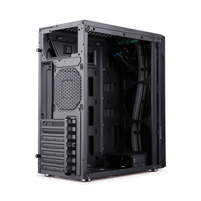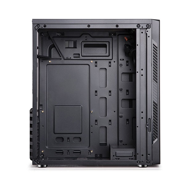 Vỏ máy tính Golden Field H2B có thiết kế phẳng với tông màu đen với dải đèn LED ở mặt trước, đem lại cảm khá giác chắc chắn mặc dù có phần khung cực kì đơn giản. Một điểm đặc biết của chiếc case này là mặt hông bên trái là một tấm mica trong suốt giúp khoe các linh kiện phần cứng bên trong, một trong những xu hướng đang được rất nhiều game thủ ưa thích.