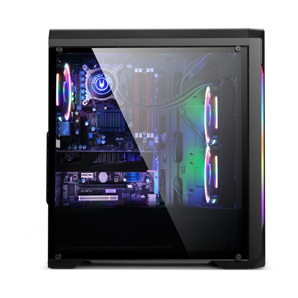 Case Golden-Field N23 có mặt bên được thiết kế trong suốt giúp cho người dùng có thể nhìn thấy được các linh kiện bên trong, kết hợp cùng quạt PC cho khả năng tản nhiệt, làm mát các linh kiện bên trong, giúp máy tính hoạt động với hiệu năng cao nhất. Cùng với thiết kế khá tỉ mỉ và sang trọng, nhờ hoàn thiện trên nền sơn tĩnh điện đen nhất quán. Mặt trước thực sự hút mắt với bề mặt trong suốt. Vỏ được làm từ chất liệu thép chống rỉ cao cấp, độ bền cao, chống trầy xước, va đập, bảo vệ tốt nhất các linh kiện máy tính bên trong.
