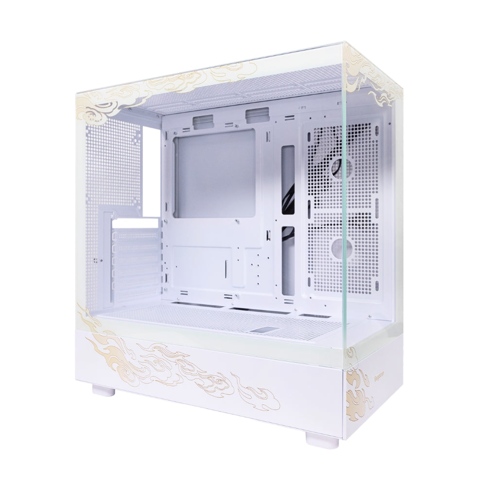 Thùng máy tính Segotep Endura Pro+ LOONG EDITION sở hữu thiết kế lấy cảm hứng từ biểu tượng “Loong” – biểu tượng văn hóa Á Đông với những họa tiết được khắc họa tinh xảo trên nền trắng trang nhã. Đây không chỉ là một thùng máy, mà còn là một tác phẩm nghệ thuật, mang đậm dấu ấn cá nhân của người sử dụng, đồng thời tạo điểm nhấn nổi bật cho không gian làm việc hay giải trí