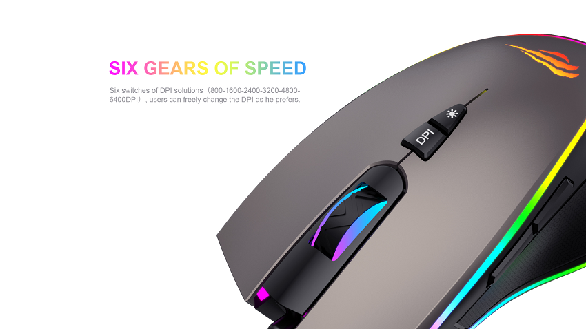 1. Six chuyển đổi các giải pháp DPI (800-1600-2400-3200-4800-6400DPI), người dùng có thể tự do thay đổi DPI theo ý muốn.
