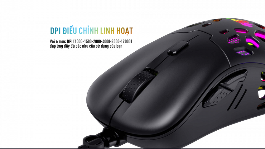 Sáu bánh răng giải pháp DPI (1000-2400-3600-5000-7000-10000DPI), người dùng có thể tự do thay đổi DPI tùy thích để kiểm soát tốt hơn Một độ chính xác, giải quyết hiện tượng rớt khung hình chuột và khung thẻ trong game khốc liệt mang đến một điều phi thường kinh nghiệm điều hành.
