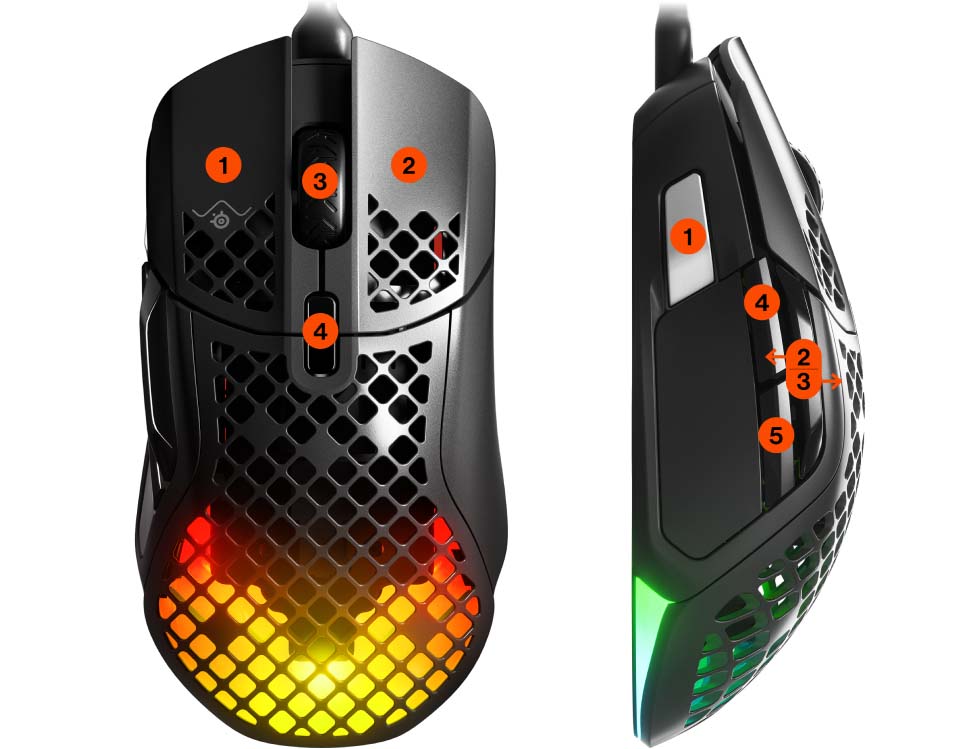 Chín nút có thể lập trình Các nút bấm trên Chuột Gaming SteelSeries Aerox 5 có thể tùy chỉnh để phù hợp với các trò chơi |
