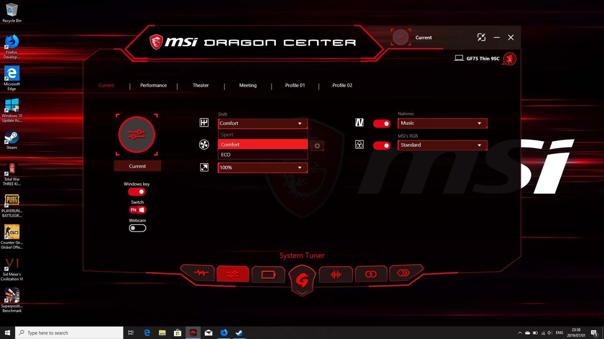 Một tính năng khá là đặc biệt mà mình đánh giá cao ở chiếc laptop gaming MSI GF75 thin này là phần mềm Dragon Center.