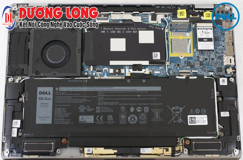 Dell sử dụng sơn graphene để giảm nhiệt độ điểm nóng. Do đó, bề mặt bảng điều khiển phía dưới mờ nhám hơn so với phần còn lại của laptop