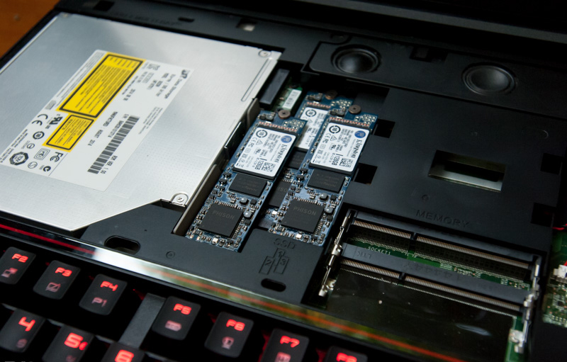 Một điểm đáng chú ý nữa về phần cứng của GT80 Titan là việc sử dụng ổ SSD chuẩn M.2. Đây là một chuẩn SSD khá mới và hiện chỉ xuất hiện trên các hệ thống Desktop. Máy có 3 ổ M.2 chạy RAID 0 và tốc độ truy xuất dữ liệu sẽ tăng đáng kể. Kết quả tốc độ sẽ rõ ràng hơn trong phần benchmark.