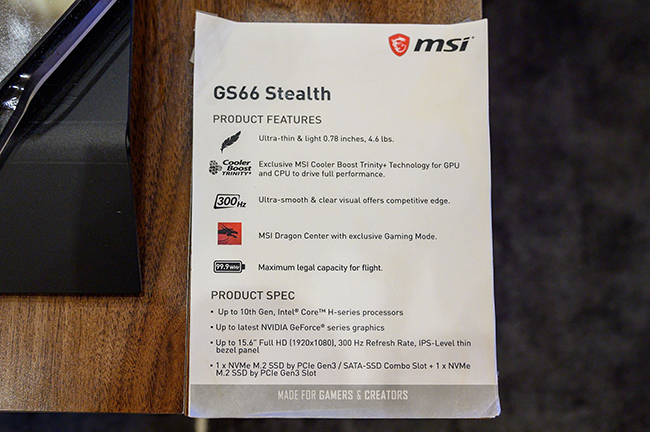 Chiếc GS66 Stealth được trang bị pin 99,9 Wh - dung lượng pin tối đa mà chúng ta có thể mang theo trong hành lý xách tay trên máy bay. GS66 Stealth sẽ sớm xuất hiện tại Việt Nam và giá bán khả năng sẽ tương đương với dòng GS65 Stealth hiện tại.