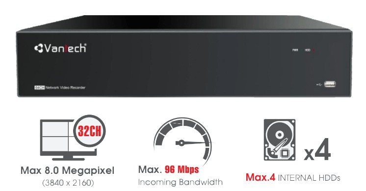 Đầu ghi hình Vantech VPH-D4032HR-N (XVR 32CHANNEL 5in1 2MP,32 kênh analog, 4 kênh IP, chuẩn H.265+)