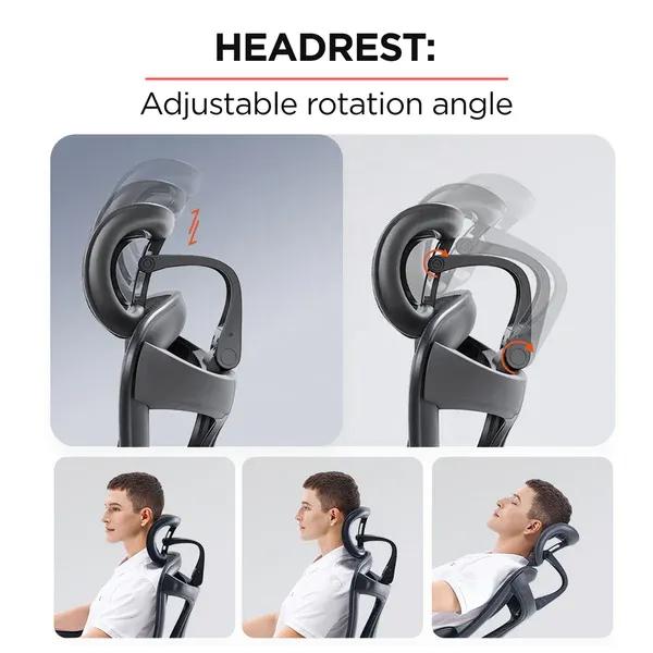 Phần tựa đầu có thể điều chỉnh và hỗ trợ đỡ lưng linh hoạt, mang lại sự hỗ trợ tùy chỉnh để tránh cảm giác không thoải mái và tạo ra tư thế ngồi đúng. Chiều cao của ghế có thể điều chỉnh để phù hợp với nhu cầu của bạn, và các tay vịn có thể nâng lên hoặc hạ xuống để vừa vặn với cơ thể. Làm từ chất liệu PA và sợi vải lạnh, giúp tự điều chỉnh và tạo ra lực hỗ trợ mạnh mẽ cho vùng eo, thúc đẩy tư thế lưng cột sống khỏe mạnh và thẳng.