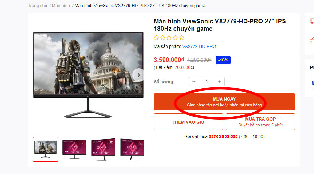 Bước 1: Chọn sản phẩm bạn mua và nhấn vào "MUA NGAY"