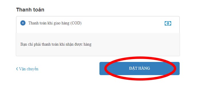 Bước 5: Chọn phương thức thanh toán và "ĐẶT HÀNG"