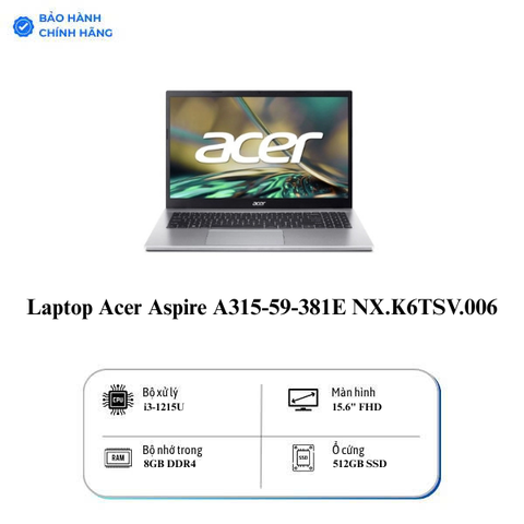 Sản phẩm Acer Aspire A315-59-381E là chiếc laptop văn phòng đủ sức chinh phục mọi ánh nhìn của người dùng với thiết kế sang trọng, thanh lịch với cấu hình đủ để bạn thực hiện mọi công việc hàng ngày được chau chuốt nhất