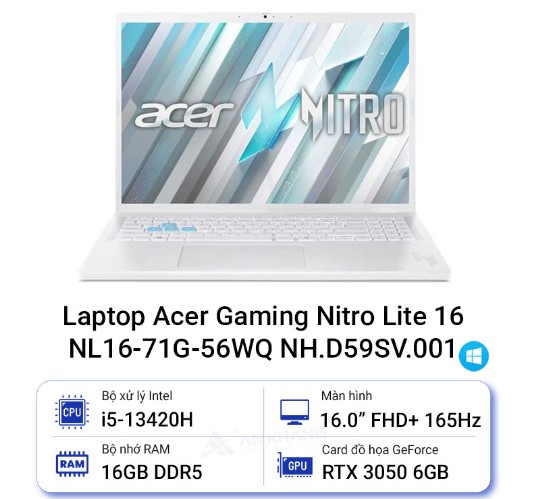 Laptop Acer Gaming Nitro Lite 16 NL16-71G-56WQ – Cấu hình mạnh mẽ