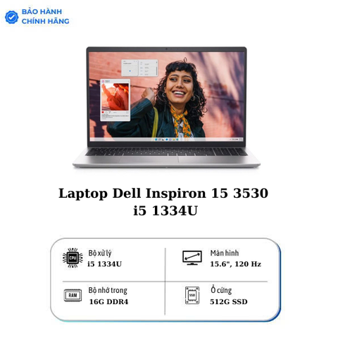 Sức mạnh của Laptop Dell Inspiron 15 3520 P16WD21 đến từ bộ vi xử lý Intel Core i5-1334U, một CPU thuộc thế hệ thứ 13 với khả năng xử lý ấn tượng. Đây là dòng vi xử lý được tối ưu cho các tác vụ văn phòng, học tập và giải trí nhẹ nhàng. Nhờ thiết kế tiết kiệm điện năng và khả năng xử lý đa luồng tốt, người dùng có thể dễ dàng làm việc với các phần mềm như Word, Excel, PowerPoint, Zoom hoặc lướt web, kiểm tra email mà không gặp tình trạng giật lag.