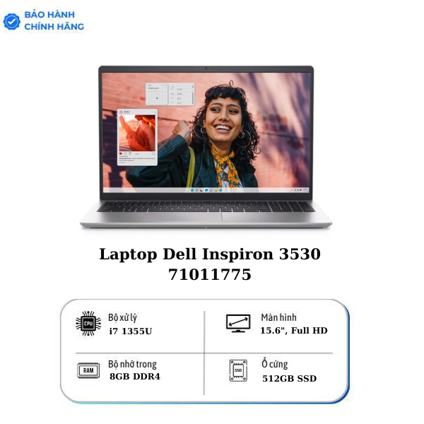 Laptop Dell Inspiron 3530 71011775 (Core i7 1355U/ 8GB/ 512GB SSD/ Intel Iris Xe Graphics/ 15.6inch Full HD/ Windows 11 Home + Office Student/ Black/ Vỏ nhựa/ 1 Year)