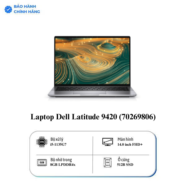 Latitude 9420 70269806 được trang bị Bộ vi xử lý Intel® Core i5-1135G7 (upto 4.20GHz, 8MB) thế hệ thứ 11 cùng với ram 8GB giúp máy thực hiện các thao tác nhanh chóng, mượt hơn cho nhu cầu làm việc và học tập một cách tốt nhất. Ổ cứng SSD 512GB PCIe NVMe giúp máy khỏi động nhanh hơn , có thể lưu trữ được nhiều dữ liệu và cài đặt được nhiều hơn
