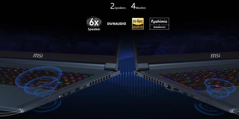 Laptop Gaming MSI Stealth 16 AI Studio A1VGG được trang bị hệ thống âm thanh vòm Dynaudio đẳng cấp thế giới. Được trang bị một cặp loa trầm khử lực kép và một cặp loa để đáp ứng những mong đợi về âm thanh cao nhất.