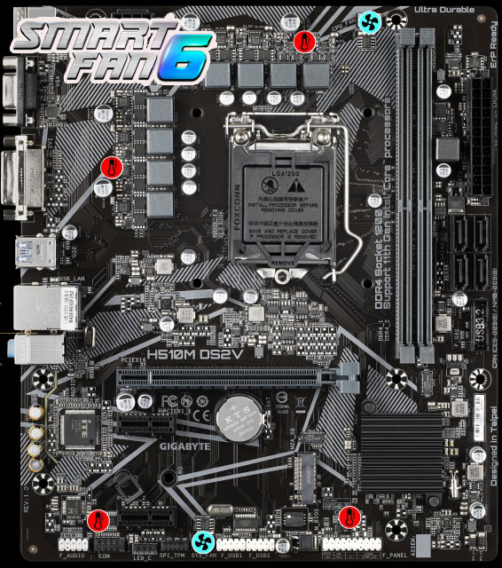 Chơi game, hoặc hoạt động liên tục cùng Gigabyte H510M-DS2V mà không lo bị quá nhiệt với Smart Fan 6, người dùng có thể đảm bảo rằng máy tính luôn duy trì trạng thái chơi game liền mạch trong khi các linh kiện vẫn được làm mát. Smart Fan 6 với 4 cảm biến nhiệt cho phép người dùng hoán đổi các đầu quạt để làm mát các vị trí tăng nhiệt trên bo mạch chủ. Không chỉ vậy, với Smart Fan còn có 2 đầu quạt lai hỗ trợ cả quạt thường và quạt làm mát bằng chất lỏng.