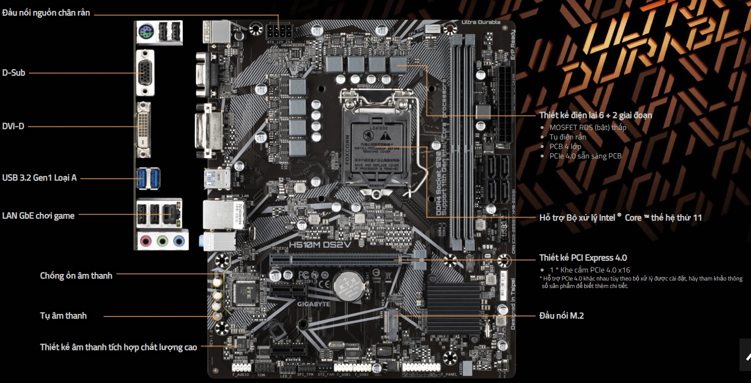 Mainboard Gigabyte H510M-DS2V là sản phẩm bo mạch chủ siêu bền với những công nghệ tiên tiến, có giá thành tương đối hợp lý, sẽ là sự lựa chọn vừa túi tiền cho những game thủ không chuyên muốn xây dựng một cấu hình đủ mạnh.