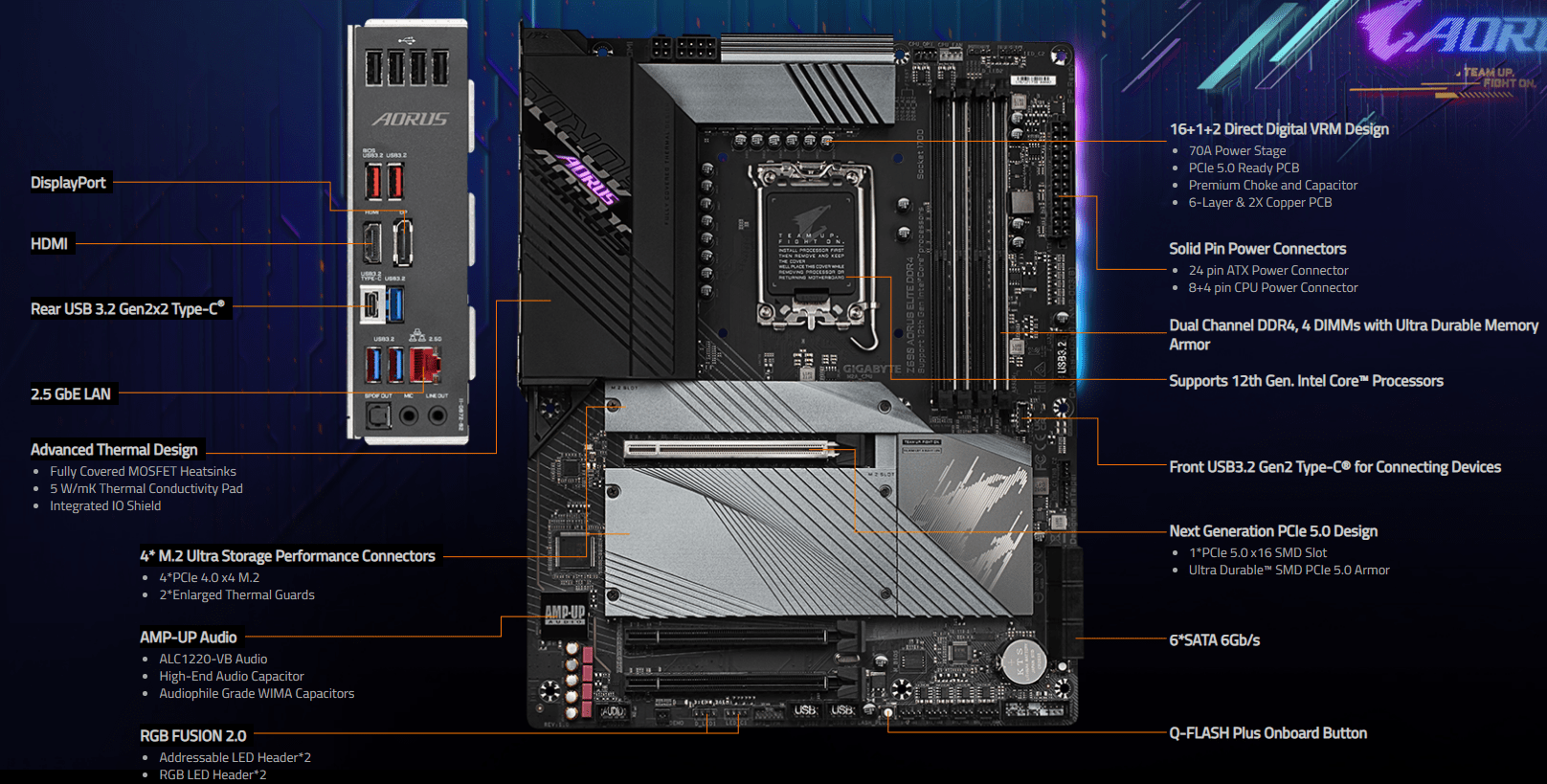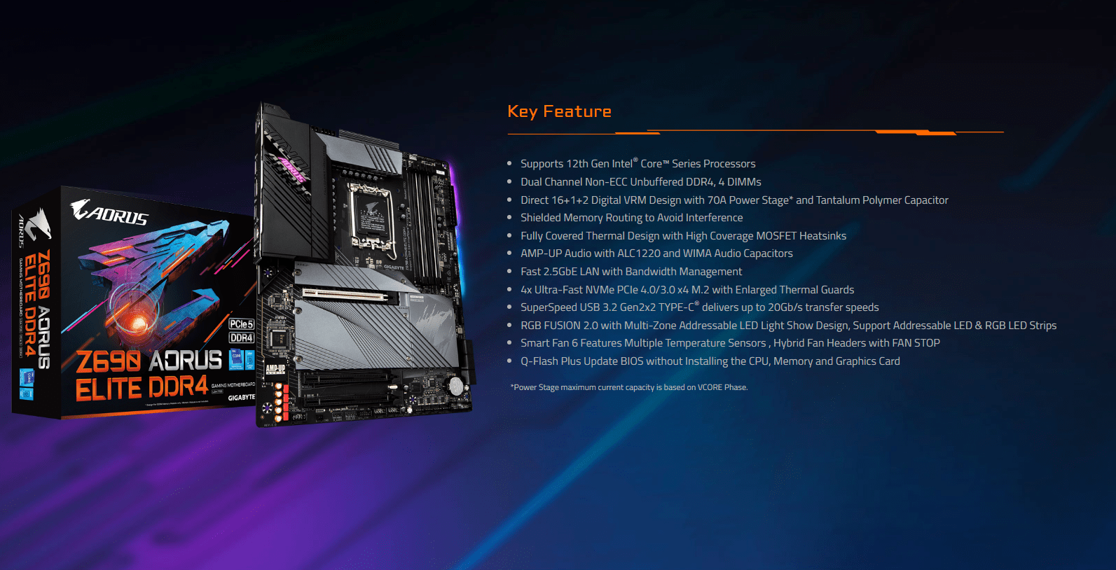 Là bo mạch chủ Z690, Gigabyte Z690 AORUS ELITE được trang bị đầy đủ các tính năng hiện đại nhất: