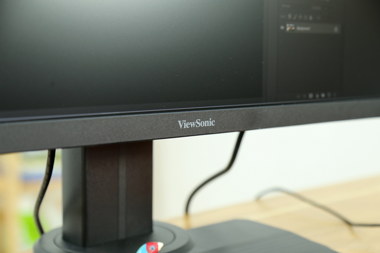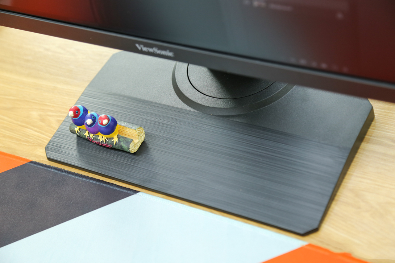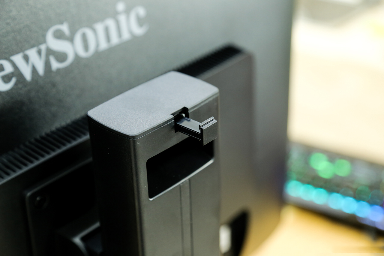 Mặt sau của màn hình vẫn được tích hợp bộ đôi loa "chống cháy" công suất 2W. Phía sau trục màn hình, ViewSonic đã tích hợp một lẫy nhỏ để người dùng có thể treo tai nghe của mình, và đây rõ ràng là sự lựa chọn hợp lý hơn để "try-hard" game, thay vì đôi loa ngoài kia.