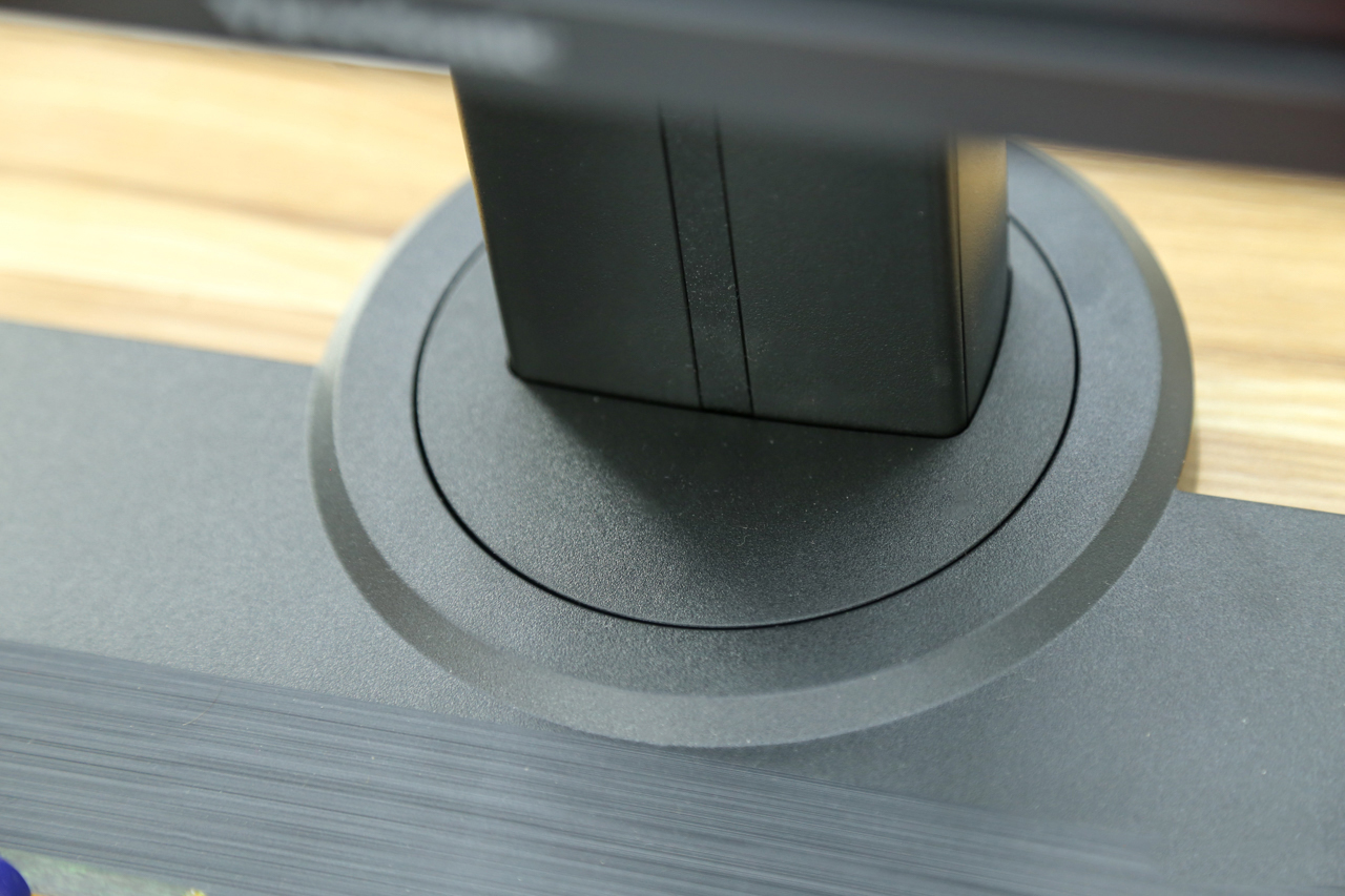 Trục xoay của XG2705 hoạt động mượt mà, giúp bạn dễ dàng điều chỉnh vị trí của màn hình cho phù hợp với không gian phòng làm việc hay chơi game. Đáng tiếc, trục xoay này không có lỗ đi dây để bạn có thể sắp xếp các loại dây trên bàn gọn gàng hơn.