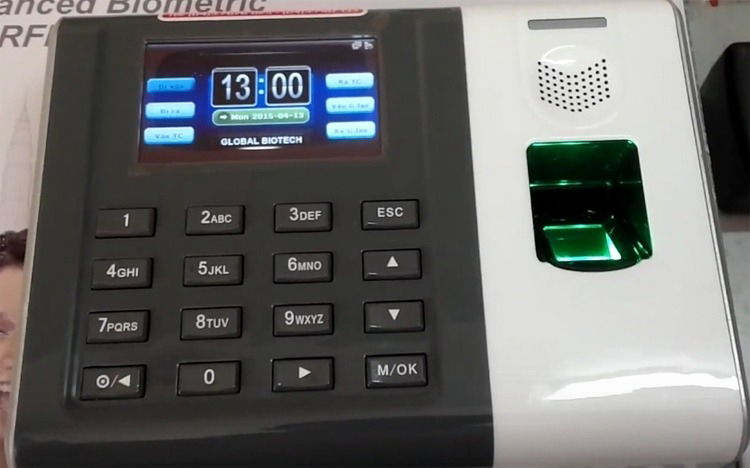 Máy chấm công vân tay Ronald Jack DG 100 với màn hình cảm ứng.