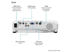 Máy Chiếu Epson EB-X06 được trang bị đầy đủ các cổng kết nối và có khả năng tương thích với hầu hết các thiết bị từ cũ đến mới. Do đó, người dùng có thể kết nối các thiết bị đa phương tiện với máy chiếu thông qua các cổng kết nối thông dụng như VGA, HDMI, Audio, S-Video, Video, USB-A, USB A-B. Trang bị này giúp bạn dễ dàng hơn trong việc setup bộ máy với nhiều nguồn chiếu khác nhau.
