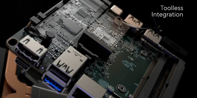 Asus NUC 14 Pro Tall RNUC14RVHU700000I có thiết kế nhỏ gọn, phù hợp với không gian làm việc hạn chế nhưng vẫn đảm bảo hiệu năng mạnh mẽ. Kích thước nhỏ giúp bạn dễ dàng bố trí trên bàn làm việc hoặc mang theo khi cần thiết. Thiết kế tinh tế và hiện đại cũng góp phần tạo nên không gian làm việc chuyên nghiệp và gọn gàng.