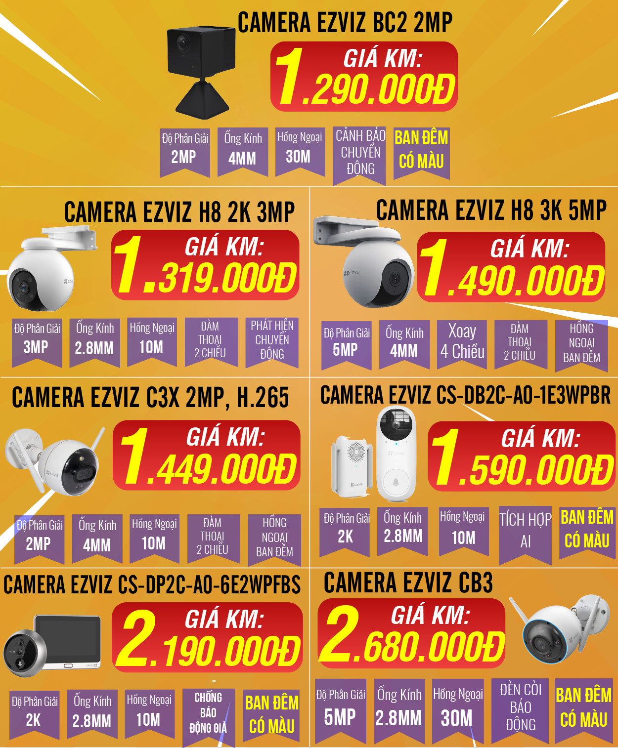 Chương trình khuyến mãi giảm giá đặc biệt chưa từng có cho các dòng Camera EZVIZ và IMOU phổ biến hiện nay.