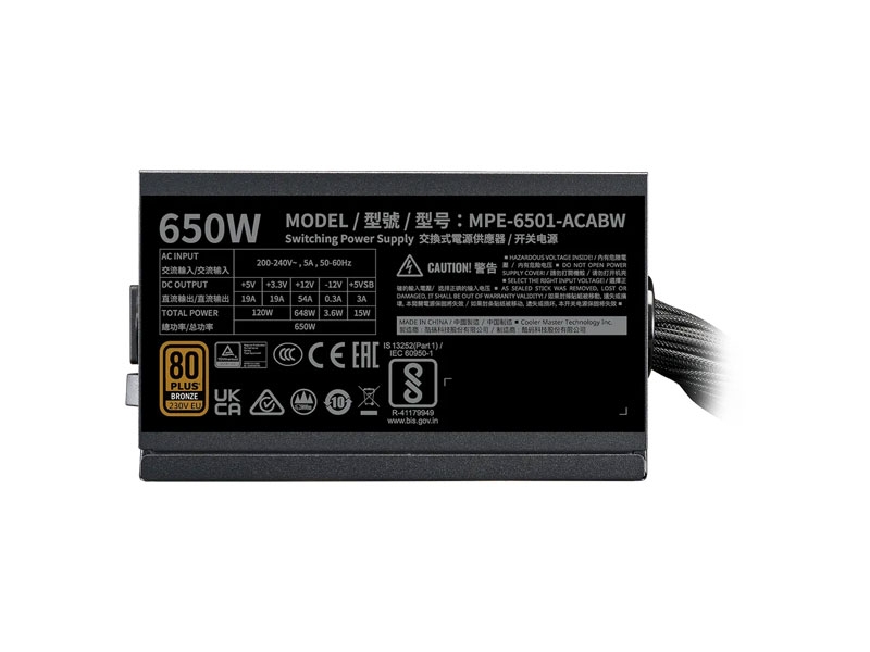 Nguồn máy tính Cooler master MWE BRONZE 650 V3 230V A/EU CABLE 650W ATX 3.1