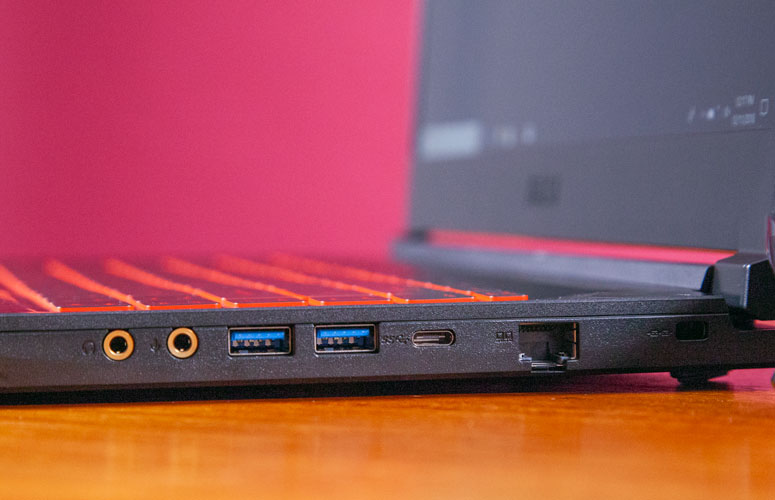 Phía bên phải của GF63 có thêm hai cổng USB 3.1 và cổng USB Type-C (đáng buồn thay, không có Thunderbolt 3). Ngoài ra còn có cổng Ethernet cho kết nối internet ổn định và giắc cắm mic và tai nghe riêng biệt nếu bạn muốn kết nối micrô chuyên nghiệp.
