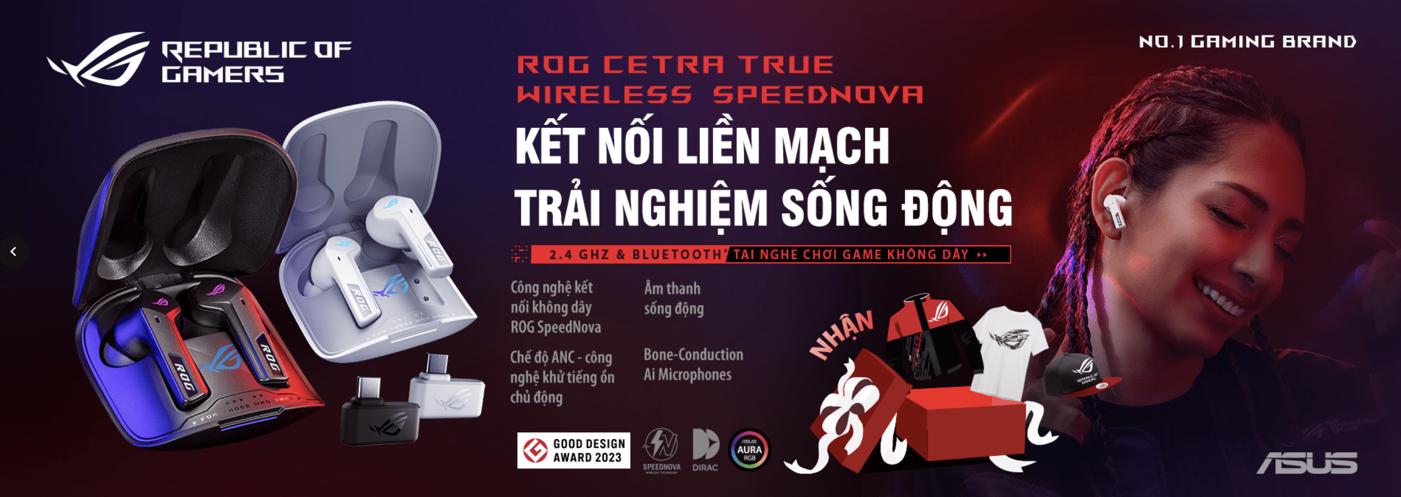 - Mua tai nghe in-ear ROG Cetra True Wireless Speed Nova nhận hộp quà ngay bao gồm ROG mũ + áo thun + áo bảo vệ ROG