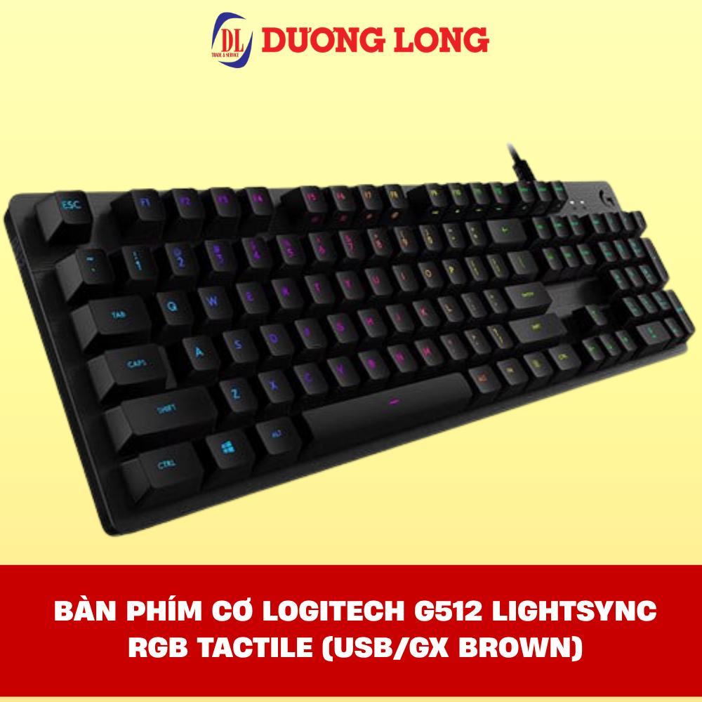 G512 sử dụng switch cơ GX Brown, cho cảm giác gõ rõ ràng nhưng không quá ồn, phù hợp cả chơi game lẫn làm việc. Khung bàn phím làm từ hợp kim nhôm tạo cảm giác chắc chắn. Hệ thống đèn RGB Lightsync hỗ trợ tùy chỉnh theo nhu cầu sử dụng hoặc đồng bộ với các thiết bị Logitech khác.