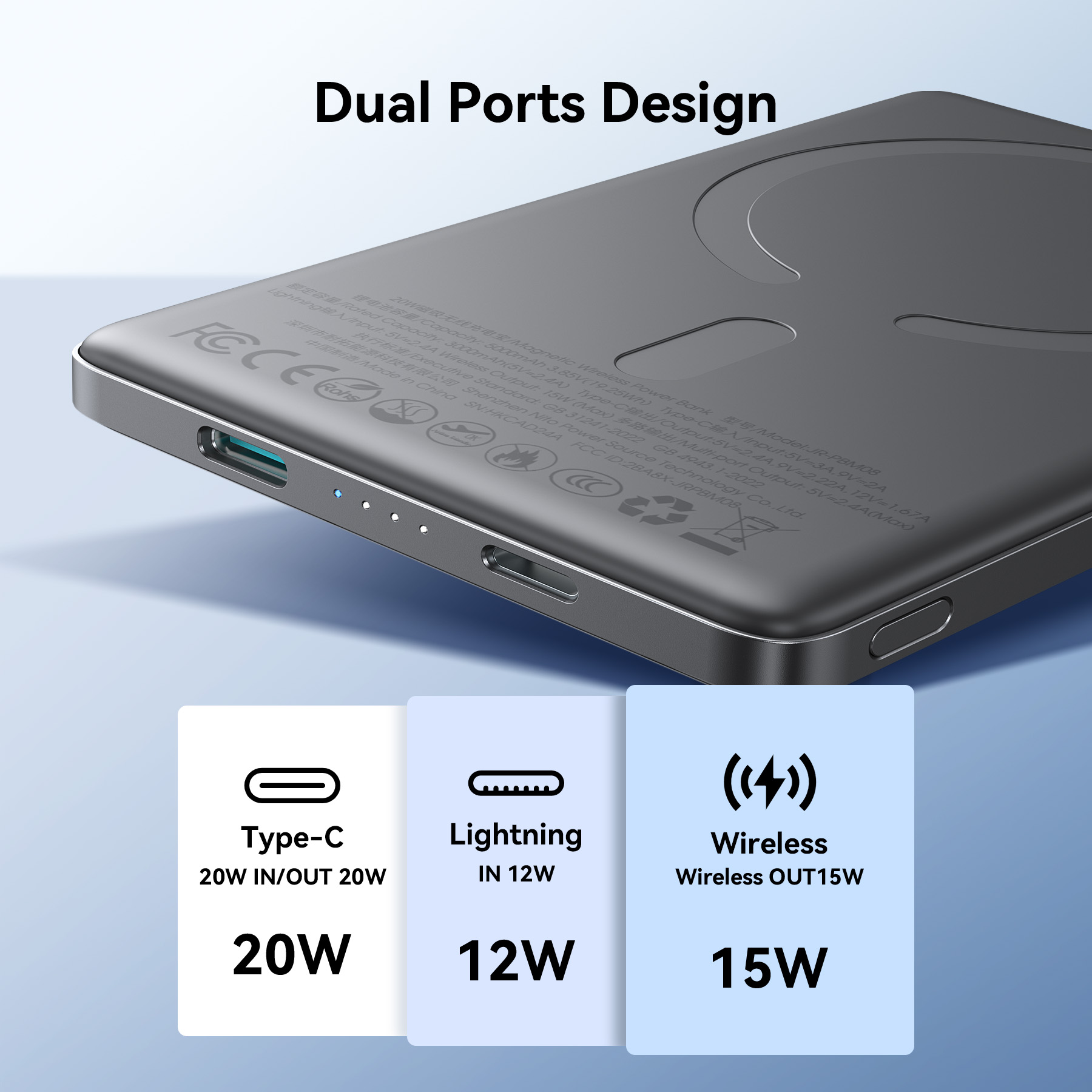 Ngoài sạc không dây từ tính, Joyroom PBM08 còn được trang bị các cổng sạc có dây, tăng tính linh hoạt cho người dùng. (Nếu có thông tin về cổng USB-C hoặc USB-A, hãy đề cập đến).