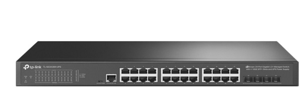 - Bộ chuyển mạch được quản lý JetStream 24 cổng Gigabit L2+ với 4 khe cắm 10GE SFP+ và Bộ nguồn UPS.