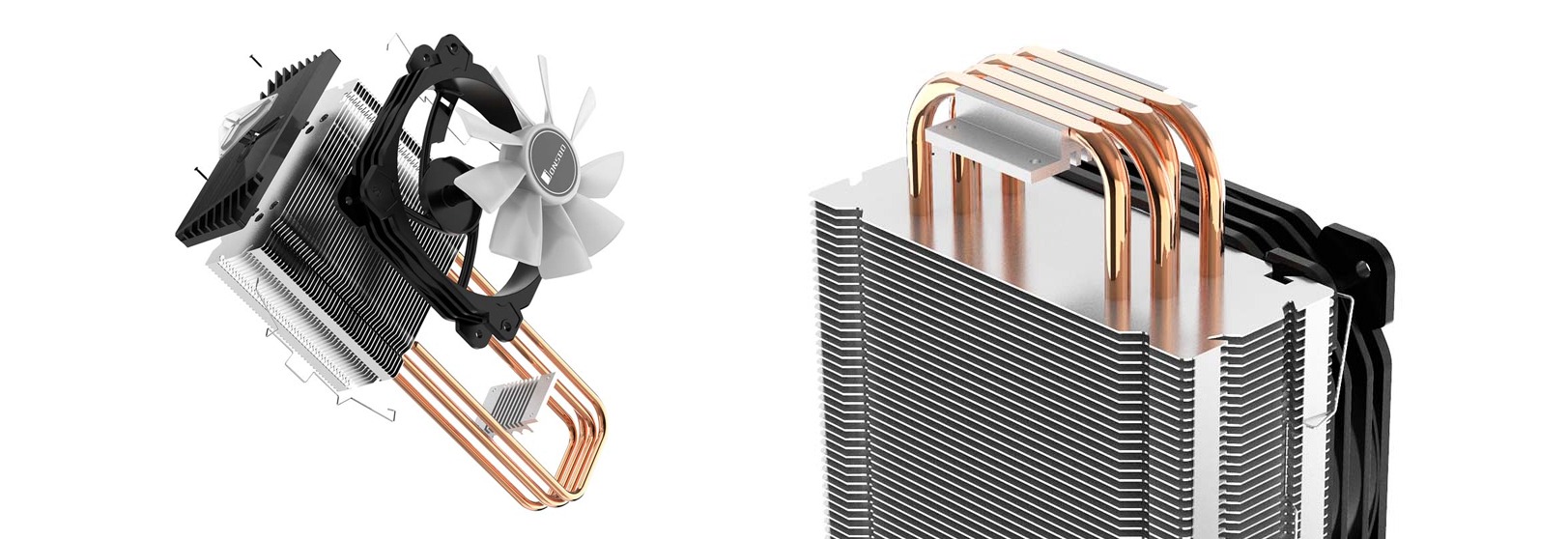 Tản nhiệt khí Jonsbo CR-1000 RGB có hiệu năng tản nhiệt tốt với diện tích lá tản lớn, 4 ống dẫn nhiệt chân không đường kính 6mm kết hợp với 44 lã tản kích cỡ 130 x 42 x 0.4mm sử dụng công nghệ FIN, tạo nên một sản phẩm tốt cả về giá lẫn chất lượng
