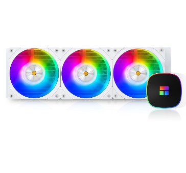 Bơm là điểm cộng của Tản nhiệt nước Thermalright Frozen Horizon ARGB khi tốc độ định mức lên đến 2800RPM, độ ồn thấp với chỉ 27dBA(MAX), ba quạt tản TL-B12-S EXTREM có tốc độ định mức đến 2150RPM và độ ồn chỉ 28.1dBA mang lại hiệu suất cực kì lớn. Mặt bơm được thiết kế vuông bo tròn các góc với logo THERMALRIGHT chính giữa. Ngoài ra, cả bơm và quạt đều được trang bị đèn Led ARGB và ánh sáng được đồng bộ hóa thông qua bo mạch chủ. Người dùng cũng có thể điều khiển tốc độ, kiểu hiệu ứng... thông qua bộ điều khiển Led ARGB. Phần dây dẫn dài và được bọc dây chắc chắn nên việc uốn ống hoặc vặn ống trở nên đơn giản.
