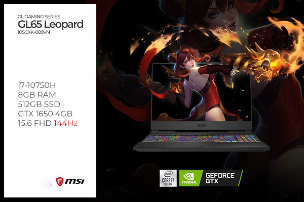 MSI GL65 Leopard 10SCXK-089VN được MSI trang bị hiệu năng xứng đáng trong tầm giá. Vi xử lý Core i7-10750H, 8GB RAM cùng SSD 512GB M.2 PCIe giúp mọi đa nhiệm trở nên mượt mà hơn, kể cả khi chạy nhiều ứng dụng cùng lúc. Bên cạnh đó, card rời GTX 1650 4GB GDDR6 kết hợp màn hình 144Hz cũng giúp các gamer trải nghiệm mượt mà các tựa game PUBG, GTA V, CS:GO,...