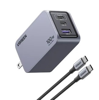 9. Tên: Ugreen 25873 100W 2c1a 3-Port Nexode Pro GaN 2 USB-C + 1 USB-A Charger space gray X757