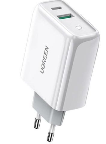 1. Bộ sạc nhanh UGREEN có 2 cổng, một cổng dành cho PD 3.0 và cổng khác dành cho Quick Charge 3.0, cho phép bạn sạc đồng thời máy tính có tích hợp PD và điện thoại di động hỗ trợ QC 3.0 với tốc độ lên đến 36W.
